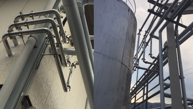 食品や薬品等を製造する工場内で使われる、一般の配管よりもとくに衛生を重視するサニタリー配管工事は当社の得意分野です。